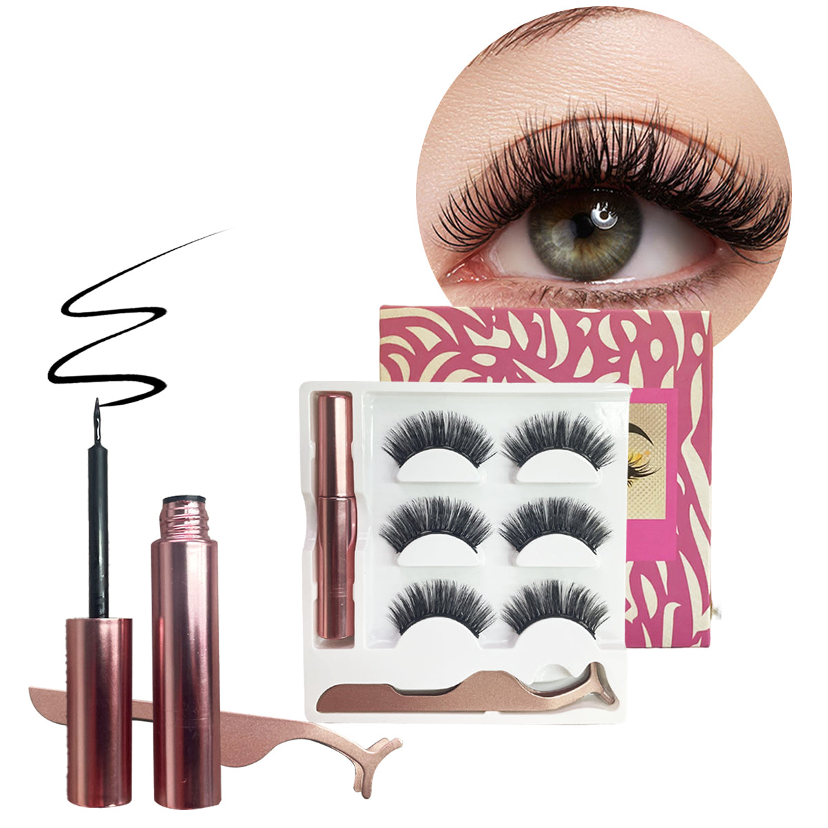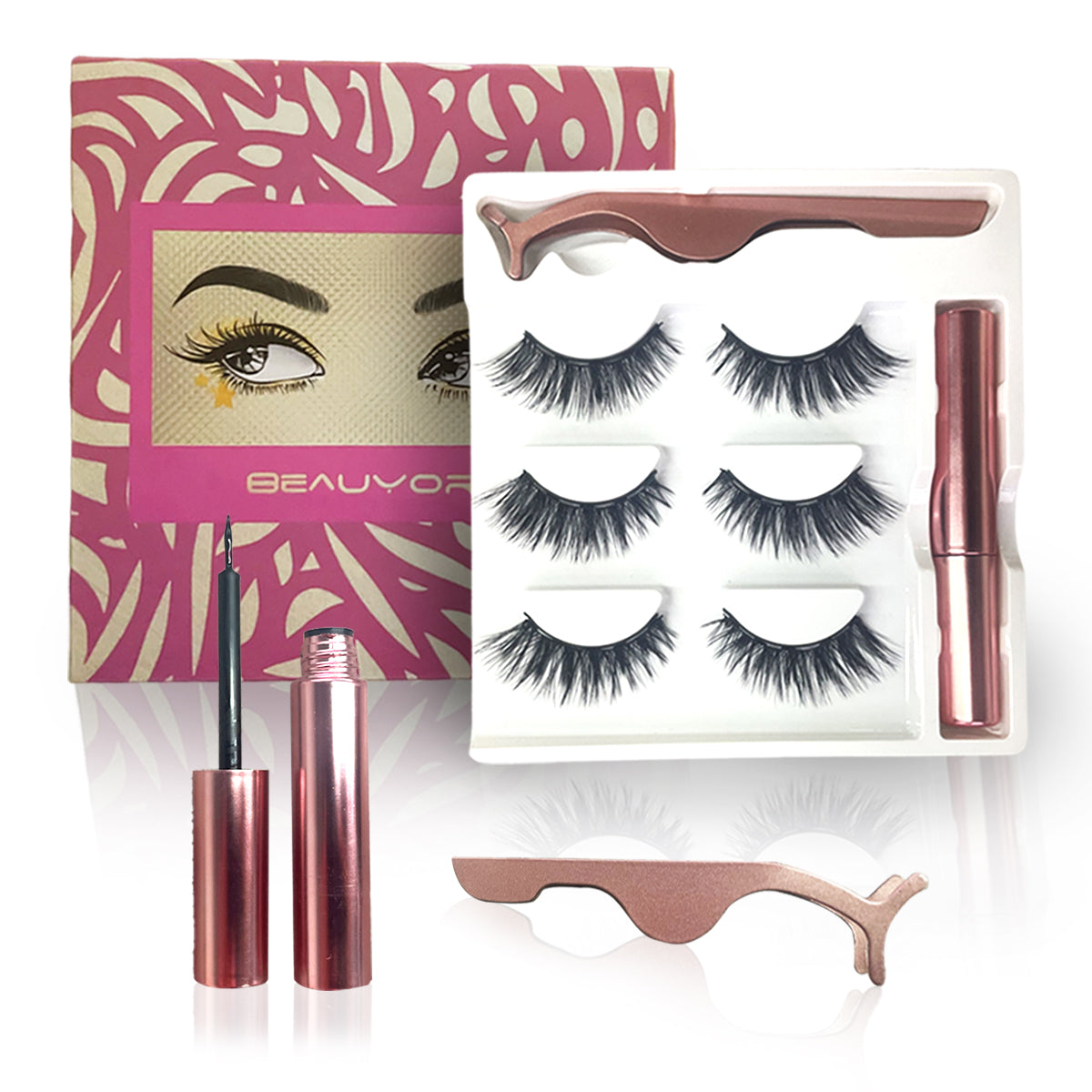 Kit De Pestañas Magnéticas 3 Pares Y Delineador - Beauyork