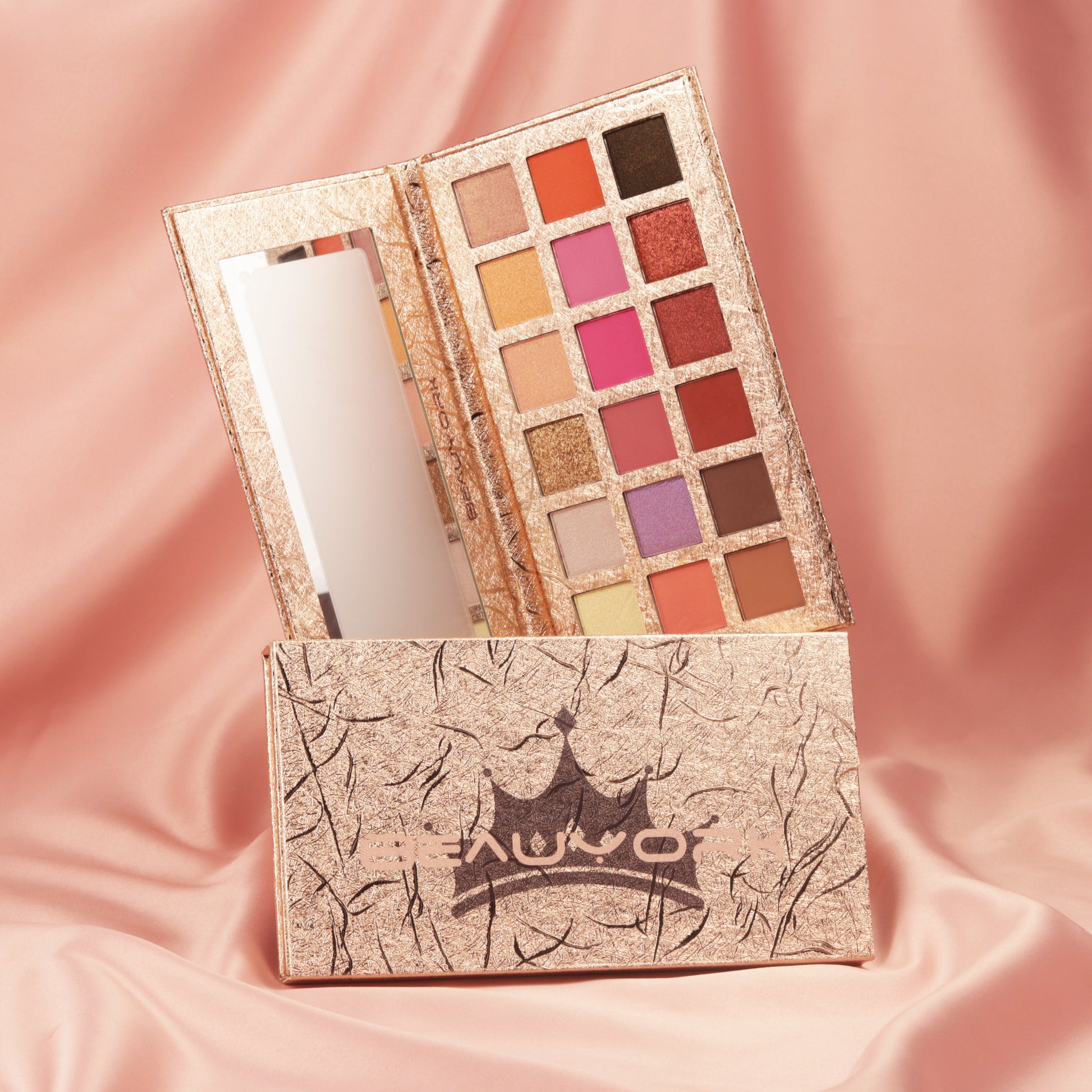 Descubre una variedad de colores digna de una reina con nuestra paleta de sombras Corona. Con 18 tonos disponibles, podrás crear infinitos looks para cualquier ocasión. Disfruta de una alta calidad y una duración sorprendente. ¡Sé la reina de tu propia belleza con nuestra paleta de sombras!